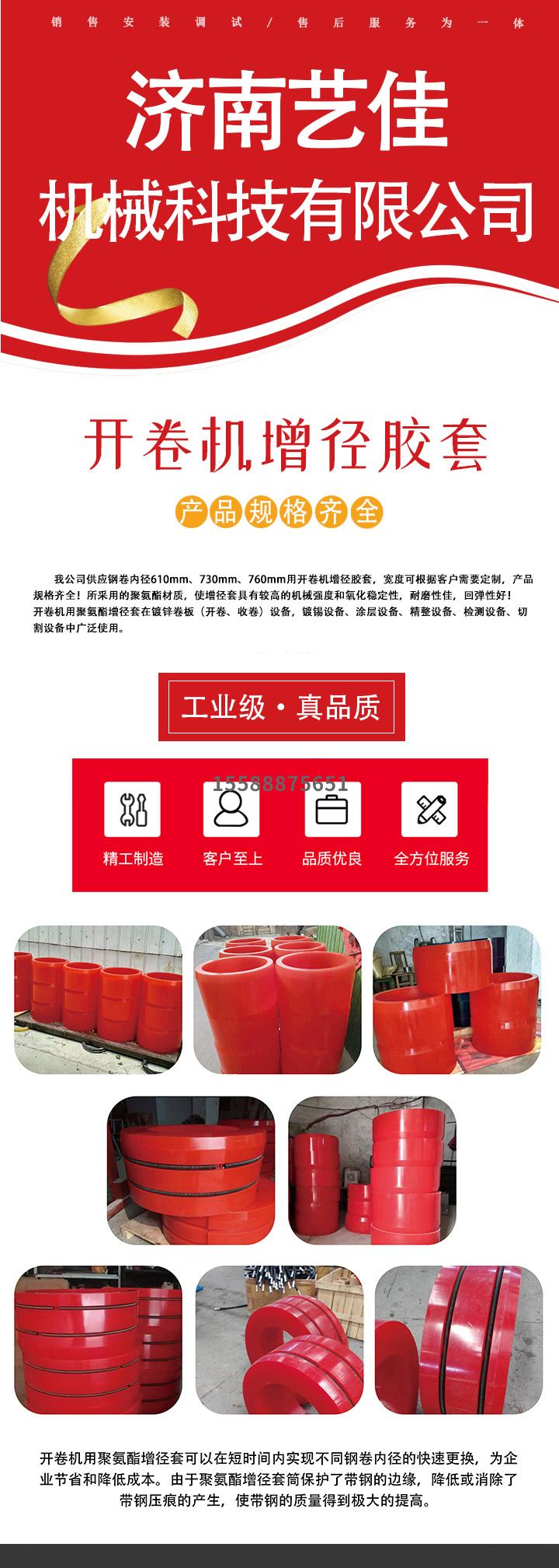 上一篇:濟(jì)南藝佳新增610變760開卷機(jī)聚氨酯增徑膠套 下一篇:鋼卷大內(nèi)徑橡膠墊圈尺寸由508擴(kuò)大到760的聚氨酯增徑套哪里有售 |